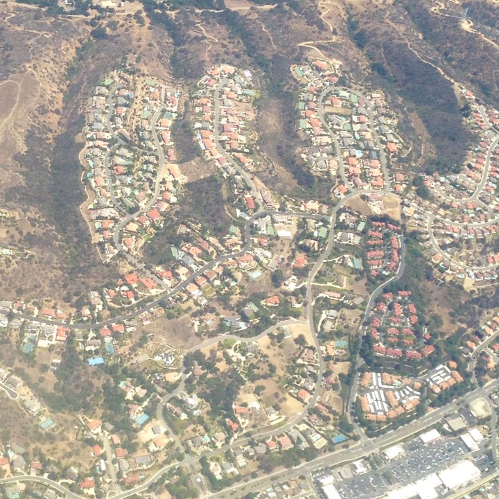 I looked at crowded highways, I saw the Hollywood Hills and the quadratic arranged neighborhoods.