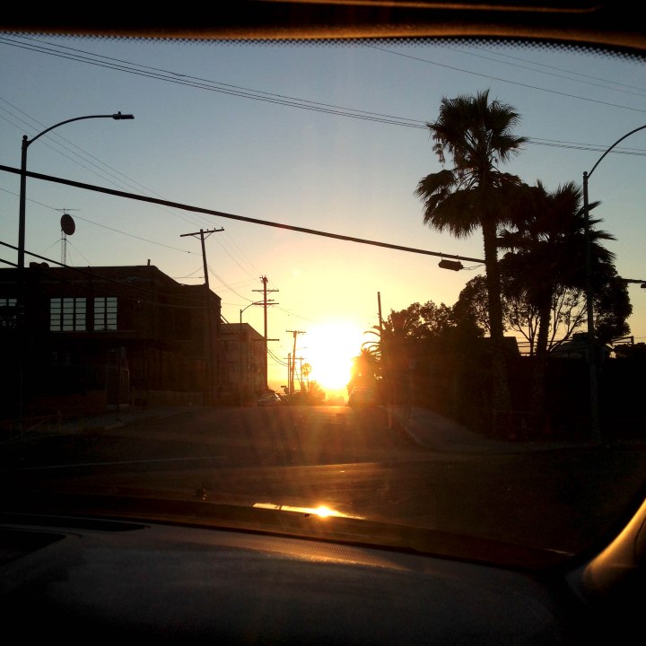 The setting sun in front of us, we took the Interstate 5 to get to our motel.