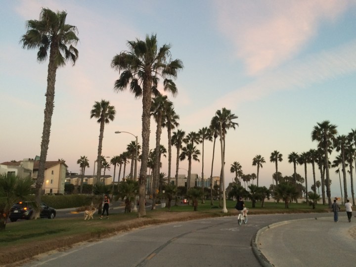 Mein Lieblings”event”, wenn man es so nennen kann, war Fahrrad fahren am Santa Monica Beach – eine Sache, die ich schon immer machen wollte. Noch nie zuvor habe ich mir in einer fremden Stadt ein Fahrrad ausgeliehen. Es war also mein ersten Mal und ich habe es nicht bereut. So kann man viele Kilometer zurücklegen und sieht die Gegenden, durch die man normalerweise läuft, viel schneller. Zum einen ist dies sehr zeitsparend, zum anderen sieht man alles aus einer anderen Perspektive. Außerdem ist gerade die Sonne untergegangen, was die Gegend noch schöner aussehen ließ, als sie ohnehin schon schön war. Besonders geliebt habe ich die vielen Palmen mit den wunderschönen Farben des Himmels im Hintergrund.