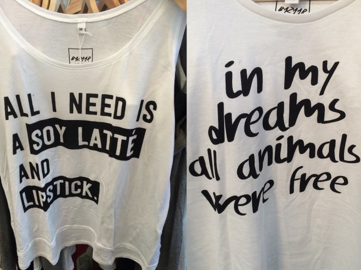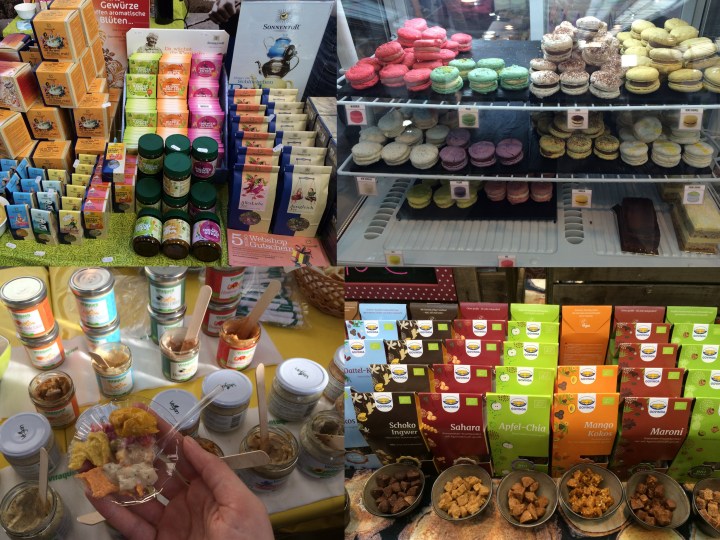 Dort gab es fast alles, was man sich vorstellen kann: Von veganem Frozen Yogurt und Waffeln über Schokolade, Smoothies, verschiedene Dips (unter anderem veganer “Thunfisch” oder “Heringsstipp”), bis hin zu Milchalternativen oder Proteinshakes. Auch wurden fair gehandelte Tees, Keidung oder upgecycelte Produkte angeboten.