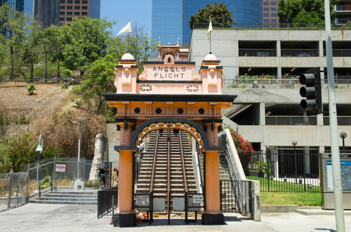 Unser Weg dorthin führte uns durch die City, vorbei durch den Grand Central Market (eine große Markthalle mit abwechslungsreichen Essständen), dem Angels Flight (eine historische Standseilbahn – sie galt bei ihrer Eröffnung als kürzeste Bahnstrecke der Welt), dem Los Angeles Police Department, der City Hall, der wunderschönen Union Station und dem Headquarter der LA Times.
