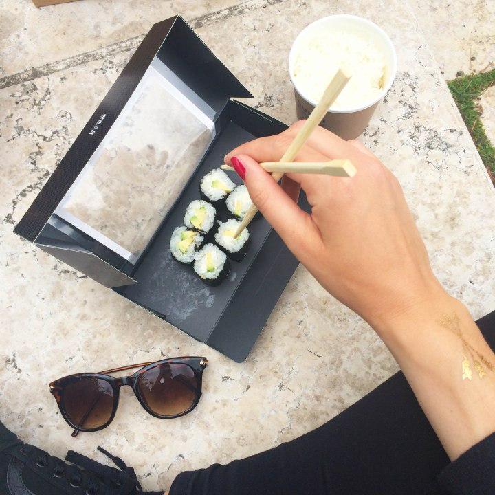 A couple hours before our flight to Rome we bought (vegetarian, duh) sushi and enjoyed it in a park with a great view of the city of Luxembourg. We sat on a stone bench, talked, took pictures, enjoyed our food and felt anticipation about our upcoming travels. Because as it is said: “Happiness is planning our next trip”.
