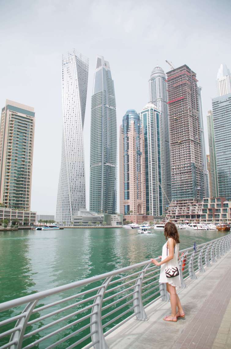 Afterwards we went to Dubai Marina, the harbor of Dubai. I was astonished by all these skyscrapers that were in front of me. Similar to a lot of places in Dubai, there were also many construction works (the city changes from day to day) but also completed buildings of course. You have to know that in Dubai many things are artificial. Not in the sense that the trees are fake but there is no wood, no mountains or natural flower fields. That’s why Dubai is also called a city in the desert. Dubai is modern and clean which sometimes makes it a bit impersonal in my opinion. Nevertheless, it’s beautiful and definitely a must-see. After a stroll along the harbor we went to the Dubai Marina Mall to get a coffee. (Did you know that there are more than 60 malls in Dubai?)