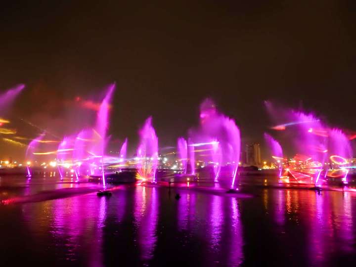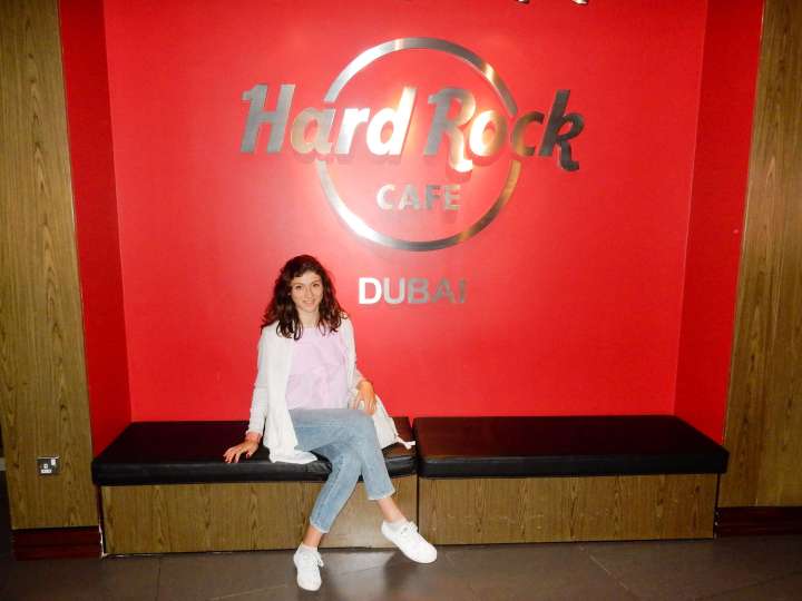 After a quick rest and outfit change in our hotel room we went to see the Laser Water Show at Dubai Festival City Mall and had dinner in the Hard Rock Café afterwards. The Laser Water Show of Dubai Festival City was accompanied with beautiful Arab music in the background which gave this whole spectacle a total unique feeling. The atmosphere at the Hardrock café was also special, since it’s so big. There was a huge stage and live music being played. The crowd was called upon to clap along and sing with together with the band. In front of us, right before the stage, there was a large group of girls who probably celebrated a birthday or some other event, that danced, sang along and celebrated together with the singer.