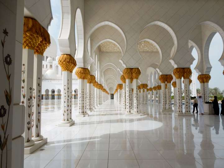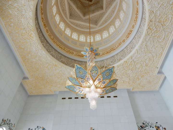 We entered the main prayer room with a huge colorful carpet, admired the giant colorful chandelier and were told a lot about its history. It was so impressive that I’d love to visit the mosque for a second time whenever I will be in Abu Dhabi again.