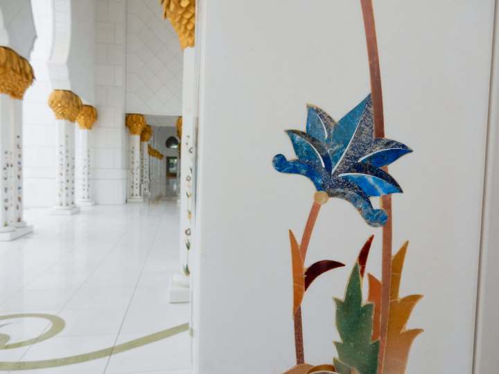 Everything seemed to be planned down to the smallest detail. We took part in a guided tour with a young lady and other tourists and learned a lot about the Islam and the Muslim culture in the Emirates. Unfortunately I don’t remember everything she said because she told us so much information but it was definitely worth it and I can totally recommend it – rather than going on your own. As far as I can remember you aren’t even allowed to take your own tour in the Mosque. For most of the rooms and aisles you need to take a staff member with you.