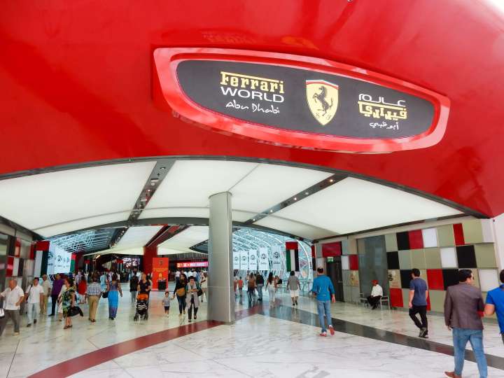 Our last stop for the day was the Abu Dhabi Ferrari World or rather the Yas Mall which is located next to the Ferrari World. I have seen this place in a vlog of one of my favorite Brazilian YouTubers and wanted to go there as well. Without planning it on purpose, our driver made us go there as it’s apparently a place every Abu Dhabi visitor has to see. Ferrari world is a theme park – with the world’s fasted rollercoaster. However we didn’t go into the park, we just “visited” the mall. In Germany I would not “visit” a mall just for the sake of visiting but in Dubai and Abu Dhabi it’s kinda a thing. The malls there are often a tourist attraction by itself, probably because of the fact that they are so huge and offer a “unique shopping experience”.