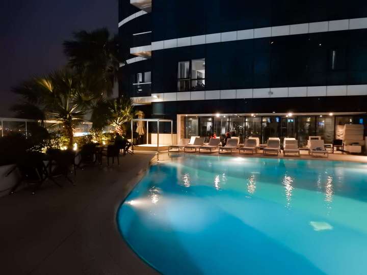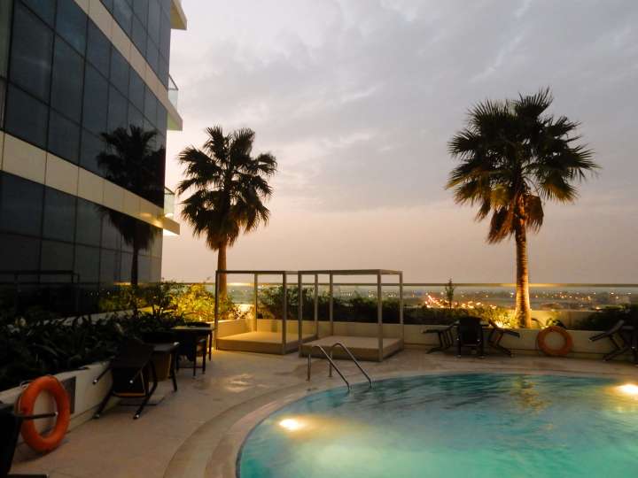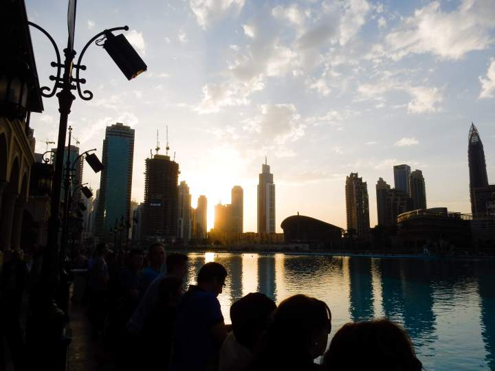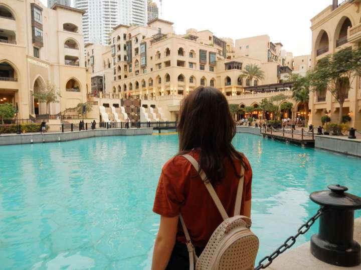 The mall looked beautiful, especially its outside water area, and we enjoyed some time there before going back to Dubai. We arrived at our hotel shortly after sunset and spent some time at the pool (to see it all illuminated and enjoy the view) before making again a trip to the Dubai Mall to see the fountains there at night.